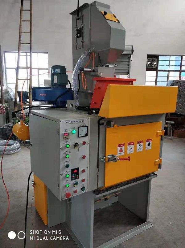 本機(jī)器屬于Q324履帶式拋丸機(jī)系列,結(jié)構(gòu)緊湊無需安裝不占空間,機(jī)型比較小、三相電連接后即可使用,一鍵式啟動(dòng)方便快捷。特別適合小工件的表面清理和強(qiáng)化。